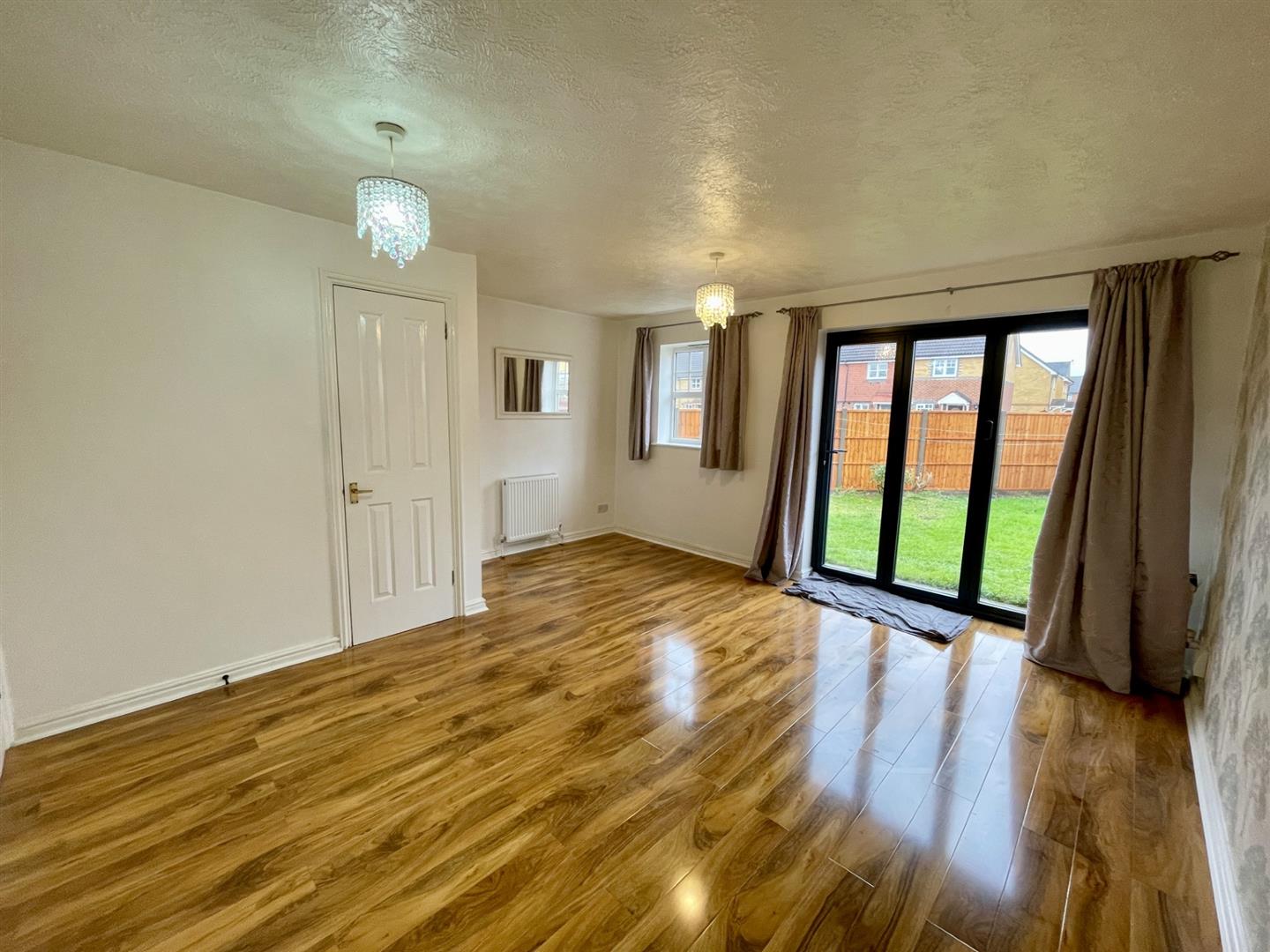 Built-in under stairs storage cupboard, radiators, fitted carpet, double glazed window to rear aspect, double glazed sliding patio doors leading out to garden.