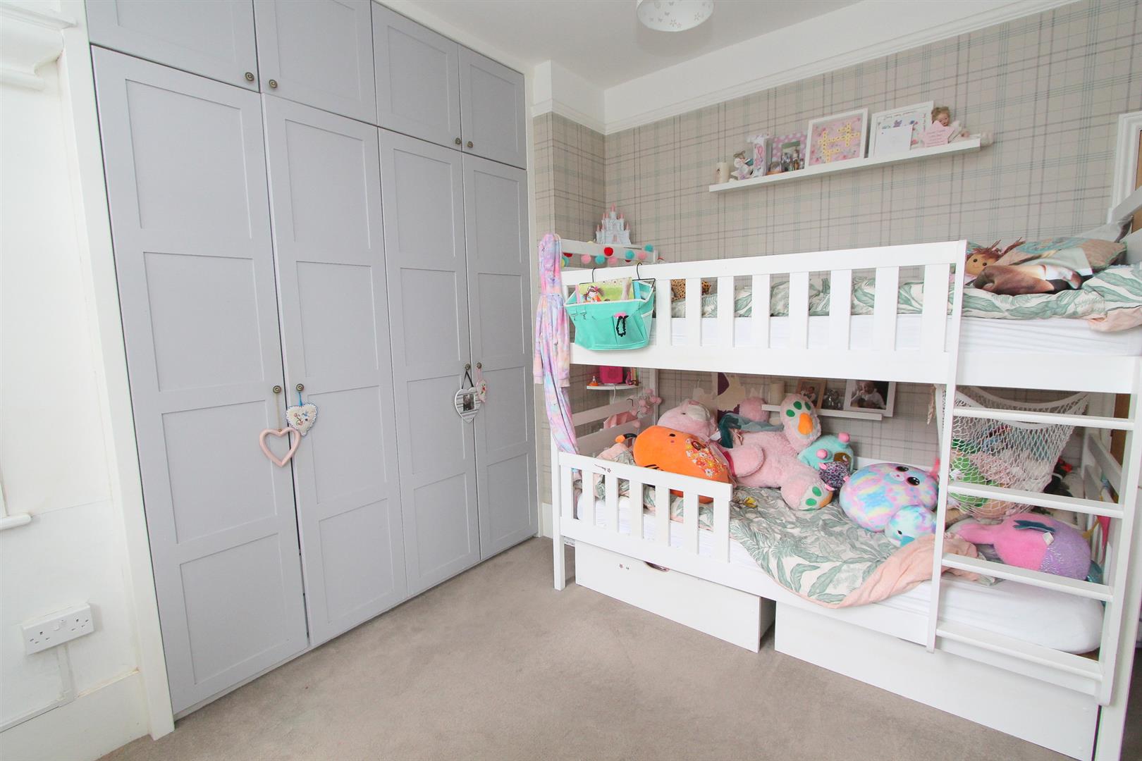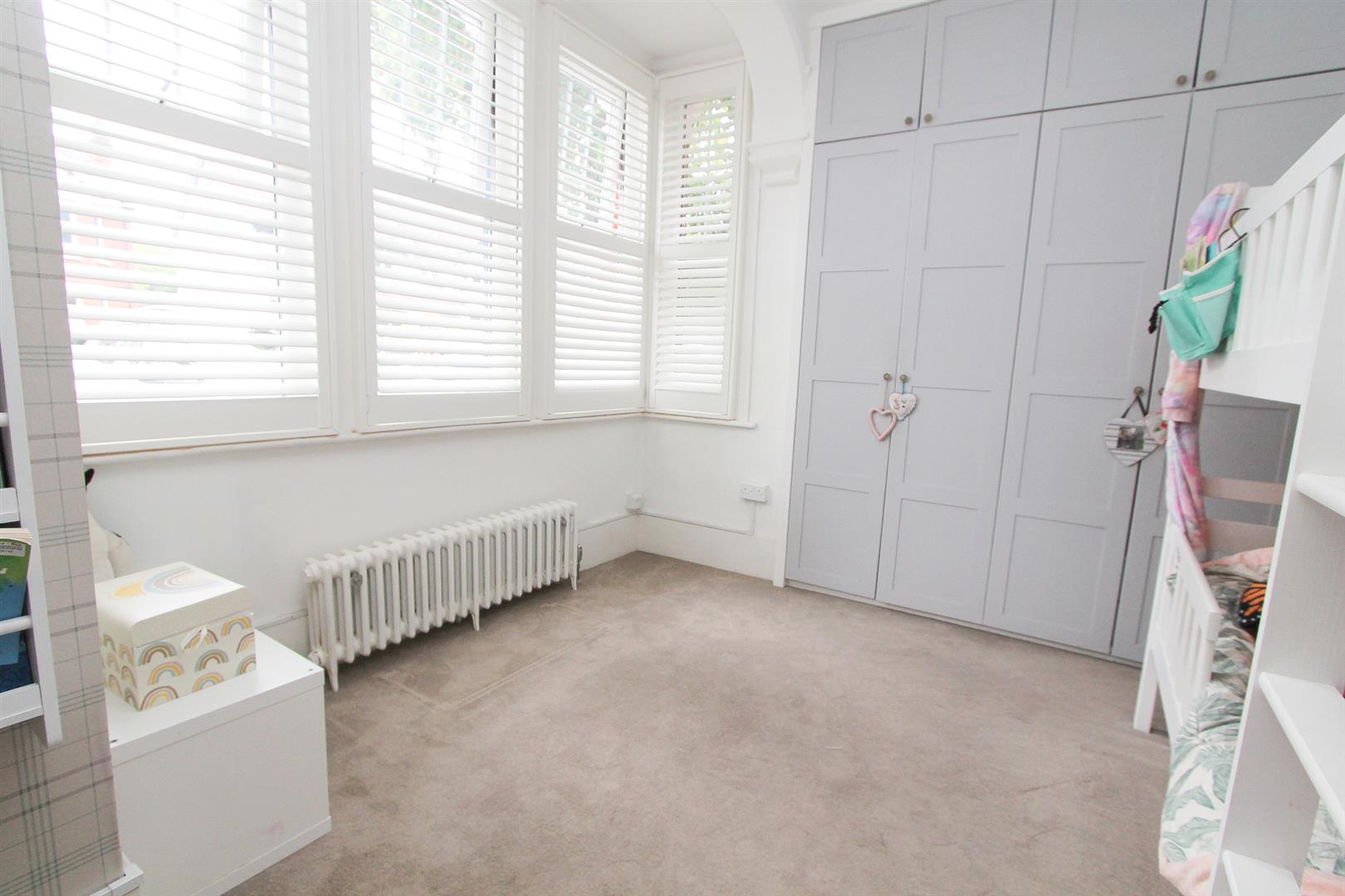 Large bay with UPVC double glazed windows to front aspect, fitted plantation shutters, picture rail, old school style radiator, fitted wardrobes.