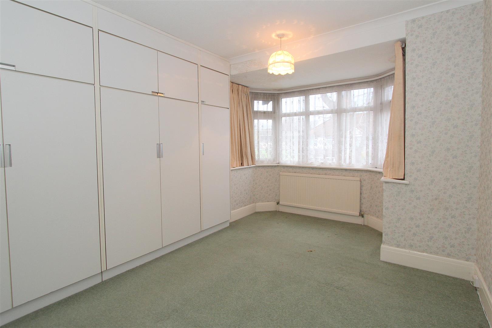 UPVC double glazed bay window with views across the local sports ground, single panel radiator, coved ceiling, fitted wardrobes.