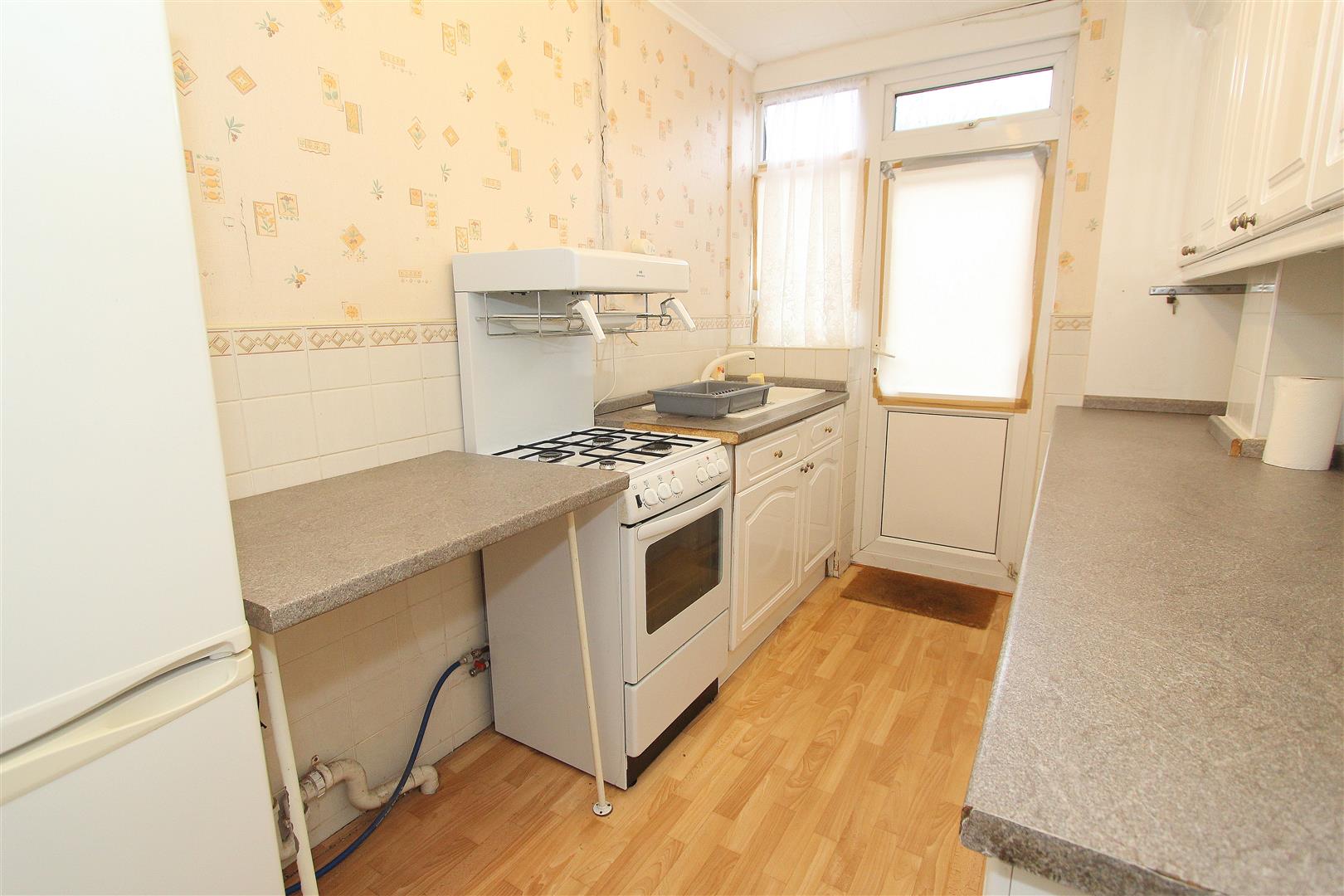 Range of fitted wall units with matching cupboards and drawers below, roll top work surfaces with inlaid sink and mixer tap, space and plumbing for washing machine, space for cooker, space for tall standing fridge/freezer, UPVC double glazed window and door to rear aspect, tiled splash back , single panelled radiator.