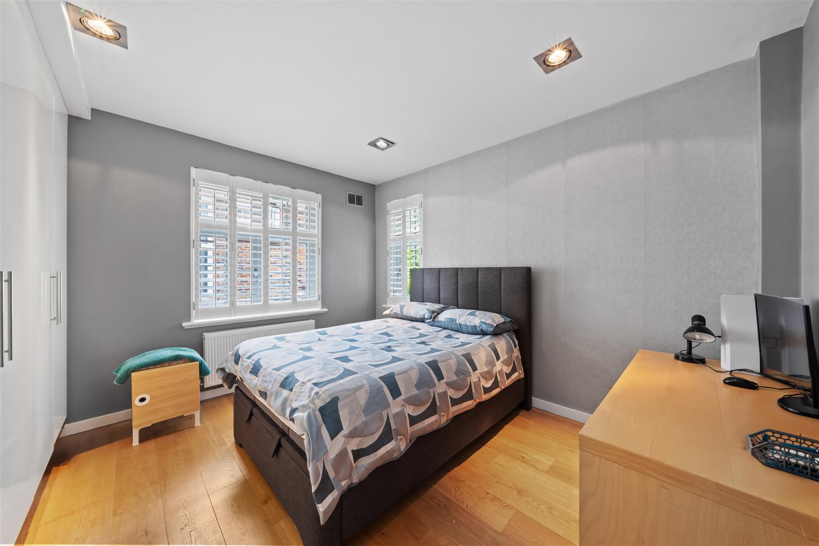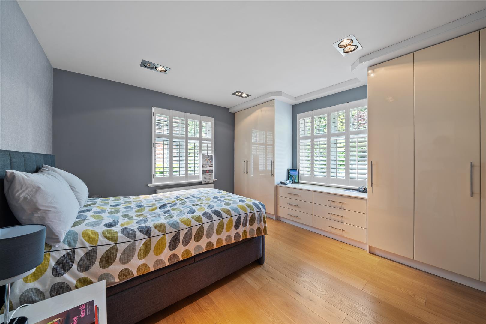 Range of fitted wardrobes and drawers, radiator, oak flooring, double glazed window to side and rear aspect with bespoke fitted shutters