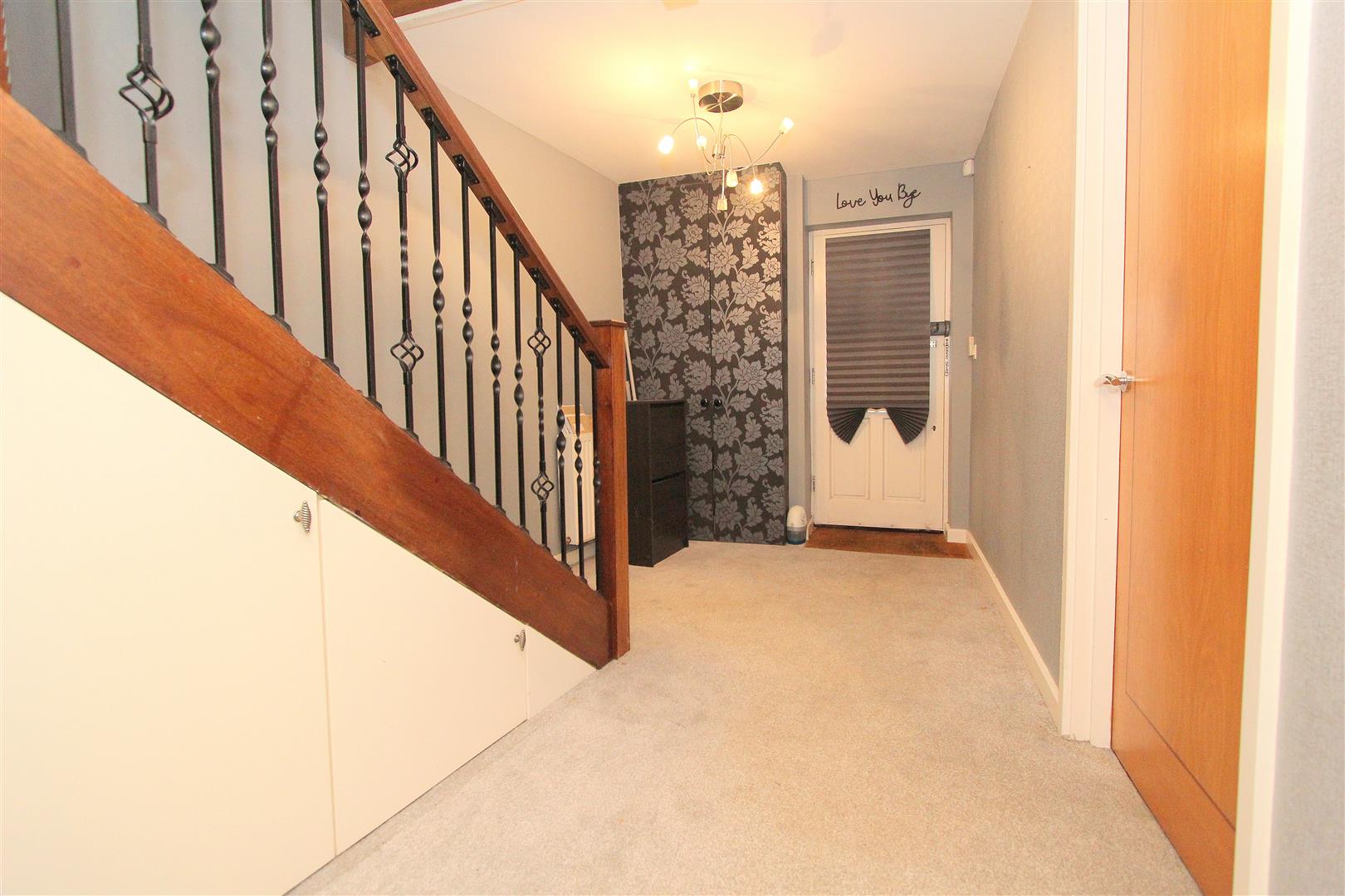 UPVC double glazed window to side aspect and door leading to rear garden, access to large under stairs storage cupboard, fitted storage cupboard, double panel radiator.