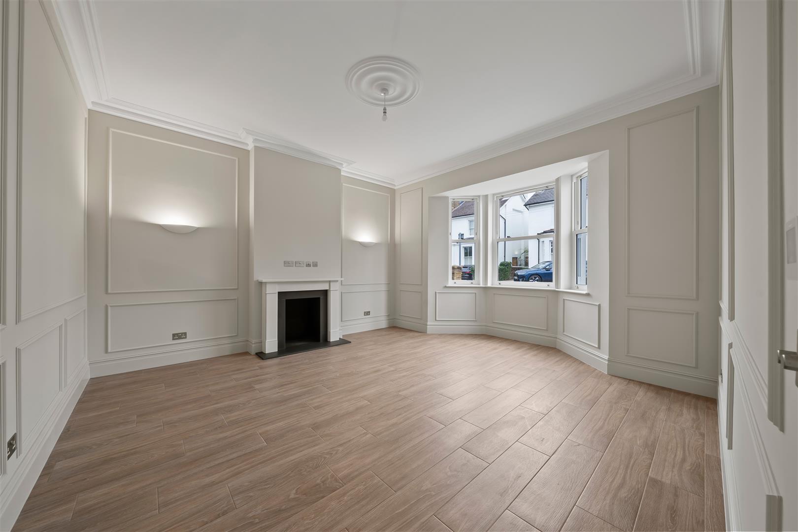 UPVC double glazed sash windows to front bay, feature panelled walls, herringbone tiled flooring with underfloor heating, decorative coving and ceiling rose, wall lights, fireplace with solid surround.