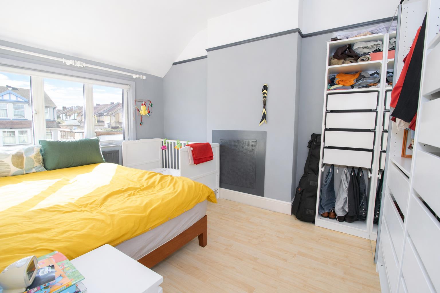 UPVC double glazed window to rear aspect and Velux window at front, access to eaves storage, covered radiator.