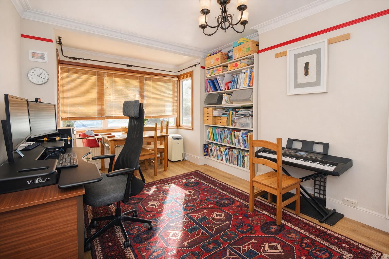 Aluminium double glazed window to front aspect, wood laminate flooring, single panel radiator, picture rail.