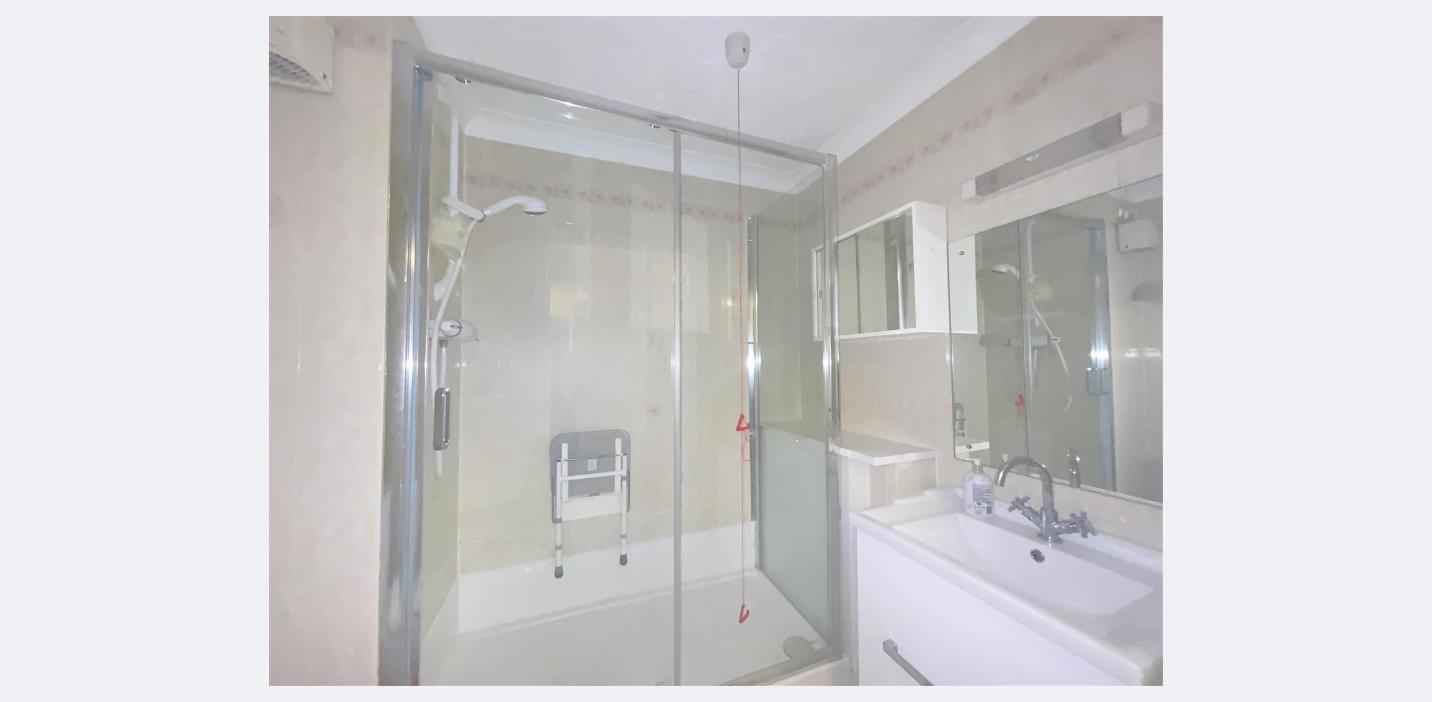 Tiled and fitted with a walk-in shower. Emergency pull cord. Wash basin, with integral vanity unit and low level WC, extractor fan, strip light, and wall mounted electric heater.