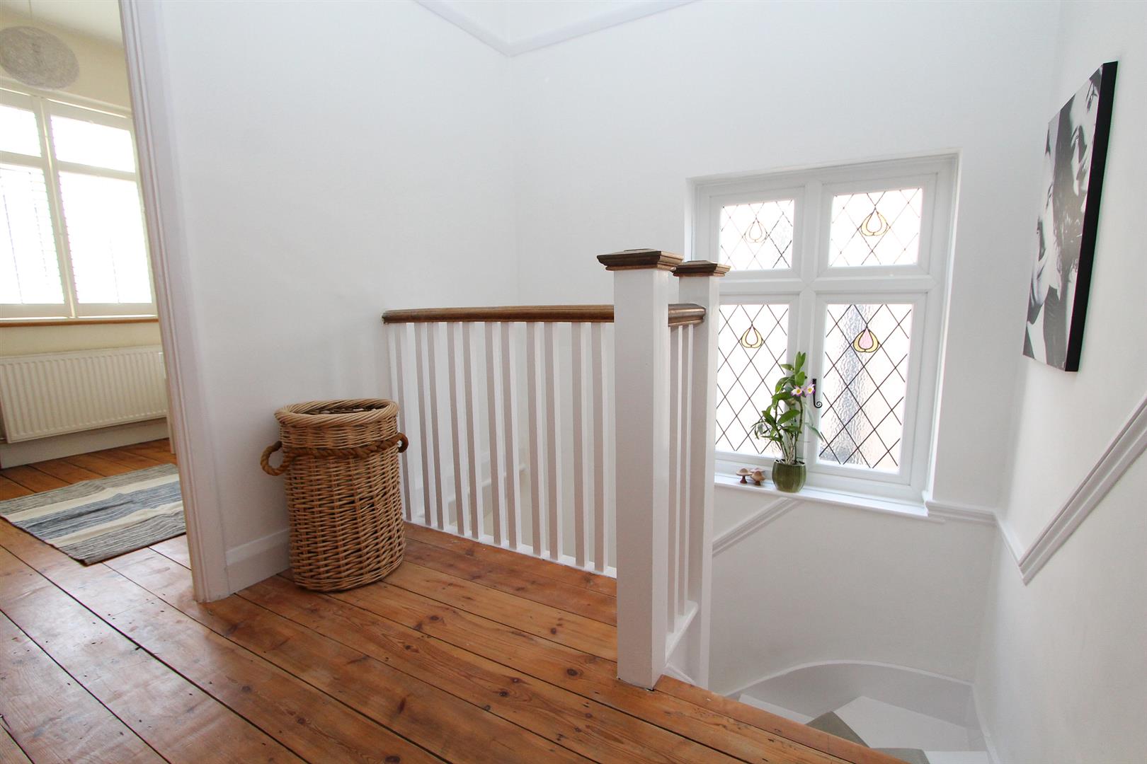 Double glazed stained glass window to side aspect, varnished floorboards, loft access (with pull down ladder and light, boarded for storage with Velux windows)