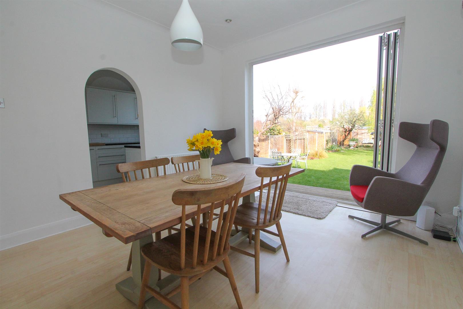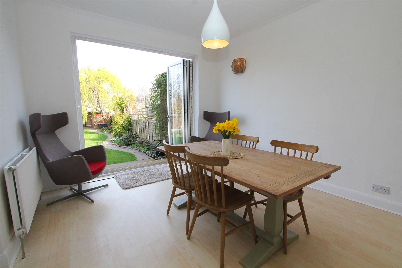 Radiator, wood laminate flooring, double glazed bi folding doors opening out to garden.
