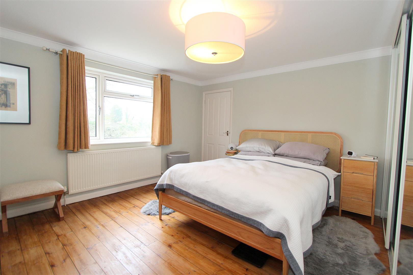 UPVC double glazed window to rear aspect, access to eaves storage, stripped floorboards, single panel radiator, fitted wardrobe with sliding mirrored doors, coved ceiling.