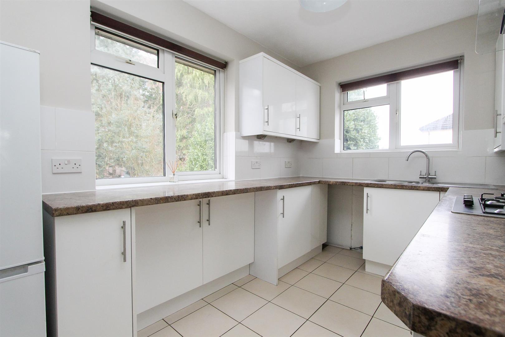 Range of fitted kitchen units and drawers, laminate worktop, inset one and a half bowl stainless steel sink with chrome mixer tap, integrated oven and gas hob with chrome extractor hood above, space for fridge freezer, washing machine and slimline dishwasher, tiled splashback, double glazed windows to side and rear aspect , tiled floor.