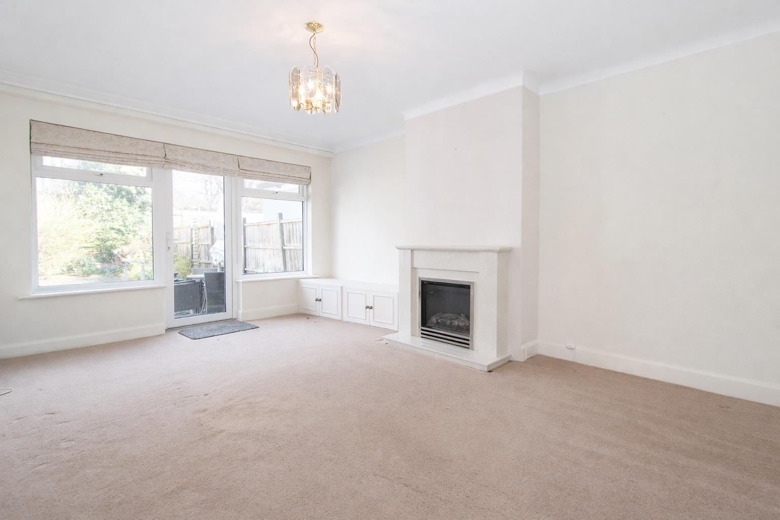 UPVC double glazed windows and door to rear aspect, two wall mounted radiators, fireplace with solid surround, fitted storage units.