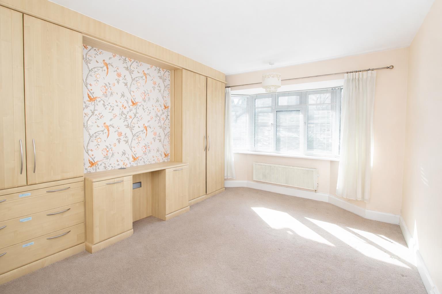 UPVC double glazed bay window to front aspect, wall mounted heater, fitted wardrobes and dressing table.